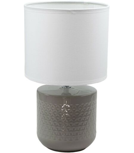 COREP Lampe à poser pied en ceramique taupe abat jour tissu blanc deco ananas
