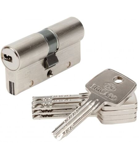 5 clés réversibles. Cylindre débrayable : ouvertures simultanées. Protection anticasse visible (brevet). Résistance à la casse, à la torsion et au perçage : système de sécurité visible S breveté, constitué de 4 lamelles en acier et d'une lamelle en inox, visibles même porte fermée. 1 piston en acier traité en face avant + contre-pistons. Résistance au crochetage : Pistons sur 2 rangées + contre pistons multiformes. 1 contre piston BKP garantit la résistance au bumping. Ressorts alternés bronze et acier. Carte personnelle. Taille du cylindre (extérieur et intérieur) (en mm): 30 + 30 Destination: Pour porte d'entrée donnant directement sur la rue Niveau de sécurité (en indice): 4 Nombre de goupilles: 10 Longueur du cylindre (en mm): 30+30 Fonction confort: Débrayable Type de cylindre: 2 entrées de clé Matière du cylindre: Laiton nickelé Résistance accrue à la corrosion: Oui Conseil d'entretien: Pour la pose: une fois le cylindre installé, vérifier le bon fonctionnemment du mécanisme ...