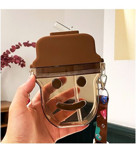 Tasse D'Eau En Paille Pour Enfants, Tasse Créative Et Mignonne Pour Glace Et Glaces, Bouteille En Plastique Avec Sangle D'Été