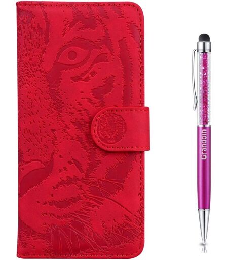 Coque Pour Huawei P40 Lite/Nova 7i, [Gaufrage De Tigre] Bookstyle Flip Cover De En Pu Cuir Tpu Souple Phone Case Pour Huawei P40 Lite/Nova 7i(Rouge)