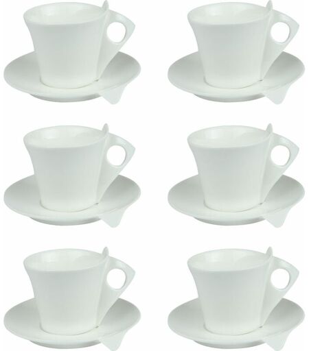 Ces tasses à café de 10 cl en porcelaine blanche, accompagnées de leur sous tasses apporteront une touche d'originalité à votre table. Collection : Libra Matière : Porcelaine Couleur : Blanc Hauteur : 6.5 cm Diamètre : 7 cm Capacité : 10 cl Compatible Lave-vaisselle Compatible Micro-onde ...