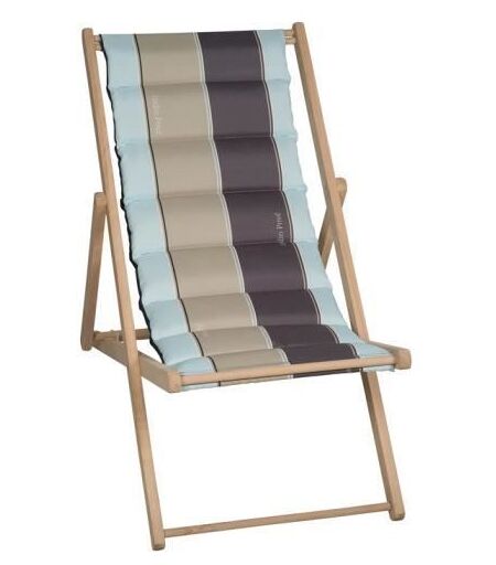 JARDIN PRIVE Chilienne en bois - Avec toile matelassée et amovible - 1 face coloris rayures gris et bleu, 1 face coloris ardoise - Structure en hetre massif, finement poncé inclinable 4 positions - Toile en polycoton 2x170g/m² matelassée et réversible - Dimensions ouvertes : 106x55x95cm - Poids maximum supporté : 120kg. ...