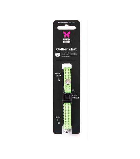 MARTIN SELLIER-Collier Chat - Martin Sellier Collier Safety Vert citron - 20/30 x 1 cm