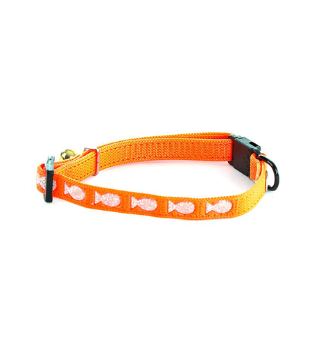 MARTIN SELLIER-Collier Argent pour chat orange motif poissons