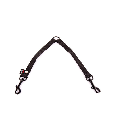 Pour un moment de partage et de complicité avec vos chiens, promenez-les en duo grâce à cette accouple noire en nylon. Équipée de deux mousquetons carabines, elle se fixe facilement aux colliers de vos animaux de compagnie. Garanties 10 ans, ses sangles sont longues de 25 cm chacune et larges de 1,6 cm. ...
