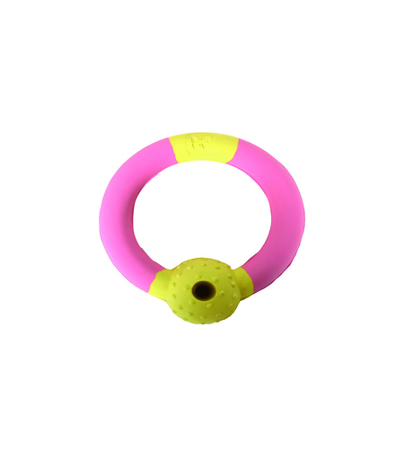MARTIN SELLIER-Jouet chien - Anneau Rubb n Treats rose et jaune pour chien Ø 10,5 cm
