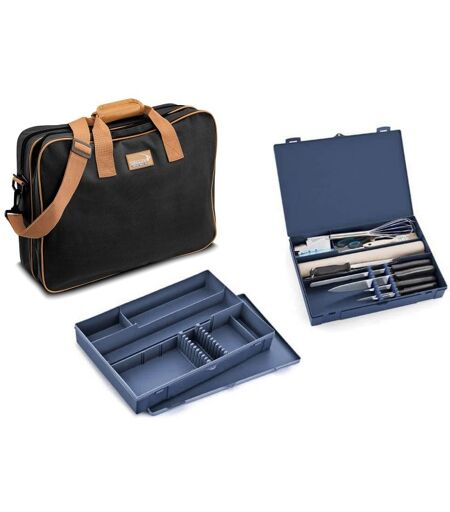Mallette "Urban case" Graphique + Coffret 33 pièces pâtissier Spécial étudiant en hôtellerie et pâtissier en déplacement Couteaux et ustensiles professionnels de qualité Dimension sacoche: 46x33x15 cm - Dimension du coffret: 44x33x15 cm Coloris noir - Voir la composition ci dessous ...