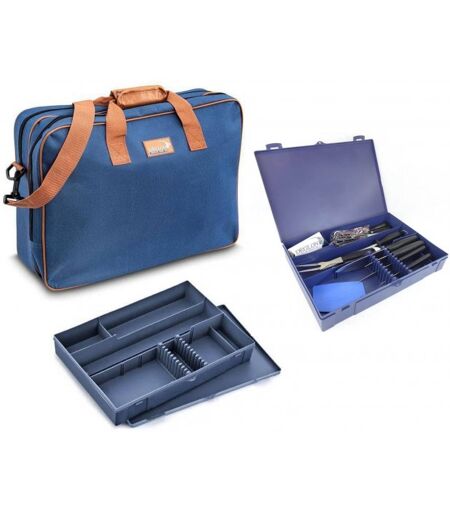 Mallette "Urban case" + Coffret 30 pièces cuisine Spécial étudiant en hôtellerie et cuisinier en déplacement Coloris bleu moderne pour s'adapter avec tout Dimension sacoche: 46x33x15 cm Dimension du coffret: 44x33x15 cm Couteaux et accessoires professionnels de qualité Voir la composition ci dessous ...