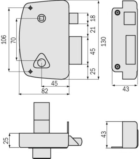 Coffre de 130 x 82 mm. Axe : 45 mm. Entraxe : 70 mm. Fouillot carré de 7 mm. ...
