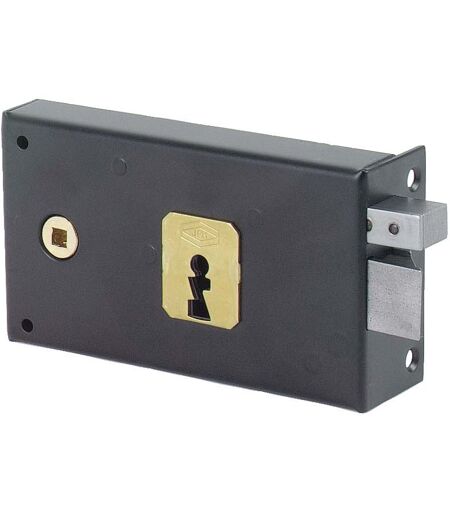 Sureté à chiffres horizontale ou verticale à pêne dormant version grille ou portail Pêne acier 1/2 tour, réversible Horizontale standard 344, carré de 6 mm : H. 79 mm x Lg. 140 mm x ép. 25 mm Axe clé à 58 mm, axe béquille à 115 mm Verticale standard 347, carré de 7 mm : H. 112 mm x Lg. 70 mm x ép. 25 mm Axe à 45 mm, entr'axe 68 mm Préciser droite ou gauche. ...