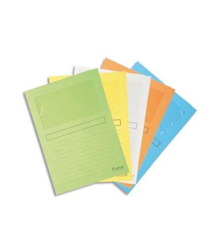 En carte recyclée 120 g La fenêtre permet l'identification rapide du contenu Maintient parfaitement les documents Pour format A4 Dimensions : 22 x 31 cm. Coloris assortis pastel : orange, bleu clair, vert clair, jaune, blanc. Coloris assortis vif : violet, bleu foncé, vert foncé, rouge, fuschsia. Paquet de 25 chemises. Assortis pastel ...