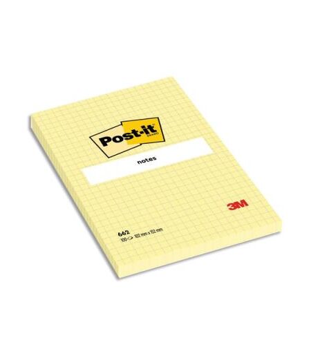 Notes Post-it grand format quadrillées - 102 x 152 mm - jaune - bloc de 100 feuilles