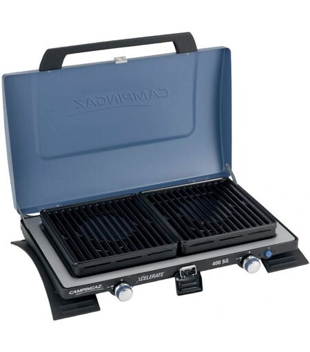 Grill cuiseur série 400 2 brûleurs.-Puissance : 4400W (2200W/brûleur).-Consommation de gaz : 310g/h (155g/h par brûleur). Brûleurs innovants Xcelerate. 2 grilles amovibles - Permet de cuisiner et de griller en même temps. Allumage : piézoélectrique -Brûleurs avec Windblock (protège la flamme du vent) -Autonomie : 9h30min (avec bouteille R907) -Temps de cuisson : 1L d'eau 11min (approx.) -Temps de cuisson : 1L d'eau 11min (approx.). ...