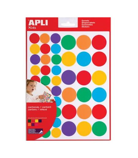 Pochette de 20 feuilles de gommettes Apli Kids enlevables rondes de tailles - 19/30 mm - couleurs assorties