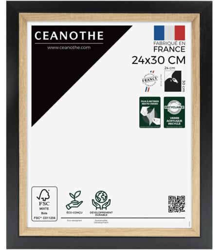 CEANOTHE Cadre Photo Noir et Bois - Cadre pour Photo 24x30 cm et 30x24 cm convient au A4 – Fabriqué en France – Cadre Photo Actual Noir Bois - Verre acrylique