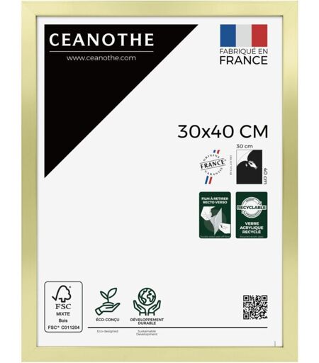 CEANOTHE Cadre Photo Doré 30X40 cm et 40x30 cm - Convient au A4 – Fabriqué en France - Cadre Precious Doré 30X40 cm - Cadre photo en Résine recyclée - Verre