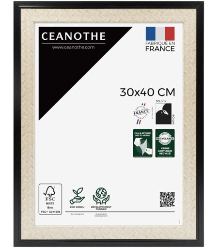 CEANOTHE Cadre Photo Noir et cannage 30x40 cm et 40x30 cm - Convient au A4 - Cadre pour photo 30x40 cm – Fabriqué en France – Cadre Photo Palma Noir 30x40 cm