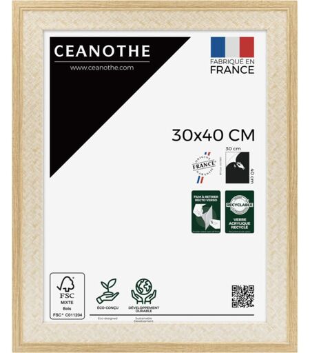 CEANOTHE Cadre Photo Brut et cannage 30x40 cm et 40x30 cm - Convient au A4 - Cadre pour photo 30x40 cm – Fabriqué en France – Cadre Photo Palma Brut 30x40 cm