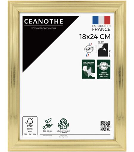 CEANOTHE Cadre Photo Doré 18x24 cm et 24x18 cm – Cadre pour Photo 18x24 cm - Convient au A5 – Fabriqué en France – Cadre Photo Julia Doré 18x24 cm en résine