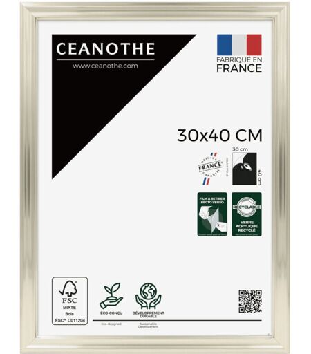 CEANOTHE Cadre Photo Blanc doré 30x40 cm et 40x30 cm – Cadre pour Photo 30x40 cm - Convient au A4 – Fabriqué en France – Cadre Photo Julia Blanc doré 30x40 cm
