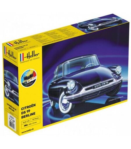 Marque Heller Référence 1000567950 Echelle 1/16, échelle idéale pour réaliser une voiture. Par exemple, une voiture dont la longueur réelle est de 4m, fera 25 cm à l'échelle 1/16 (400/16=25). Maquette de voiture (à monter et à peindre). C'est en 1955 que la Citroën DS 19 a fait sa sortie au salon de l'automobile de Paris. Cette voiture se distingue rapidement des autres véhicules grâce à ses nombreuses avancées technologiques.. Retrouvez cette voiture de légende avec ce starter kit qui vous propose une construction clé en main avec peinture et pinceau inclus. ...