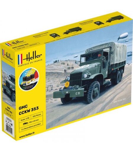 Maquette Plastique : Coffret GMC US-Truck - 1/35 - Heller 57121 Le GMC CCKW est un véhicule militaire américain de transport à trois essieux moteurs qui a servi durant la Seconde Guerre mondiale (1939-1945) et durant la guerre de Corée (1950-1953) dans l'armée américaine et dans l'armée française durant la guerre d'Indochine (1946-1954) puis la guerre d'Algérie (1954-1962). Il était proposé en plusieurs variantes, à cabine ouverte ou fermée, avec treuil et sans treuil, à châssis long (CCKW 353) ou court (CCKW 352) à pont SPLIT ou à pont BANJO, à caisse bois ou à caisse fer. DIMENSIONS : Nombre de pièces : 226 Dimensions maquette : Longueur : 196mm Largeur : 64mm CONTENU DE LA BOITE : Maquette HELLER : Coffret GMC US-Truck - 1/35 - Heller 57121 Lot de peintures Pinceau Colle Planche de décalcomanies Plan de montage détaillée en français A PRÉVOIR : RIEN à prévoir, tout est inclus. Dans ce kit, seules les peintures de base (couleurs principales de la maquette) sont fournies. Une fois votre maquette terminée vous pouvez l'améliorer avec les peintures en option qui figurent au dos de la boite. Découvrez toute notre gamme de peintures pour maquette. ...