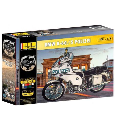 Maquette moto à monter et à peindre : BMW R-60/5 PoliceNombre de pièces : 323 pièces.Contenu :- 1 maquette - Planche de décalcomanies- 10 pots de peintures de base- 1 pinceau- 1 tube de colle- Plan de montageÉchelle : 1/8.Dimensions de la maquette montée : longueur 28.2 cm x 15 cm Age minimum : 13 ans ...