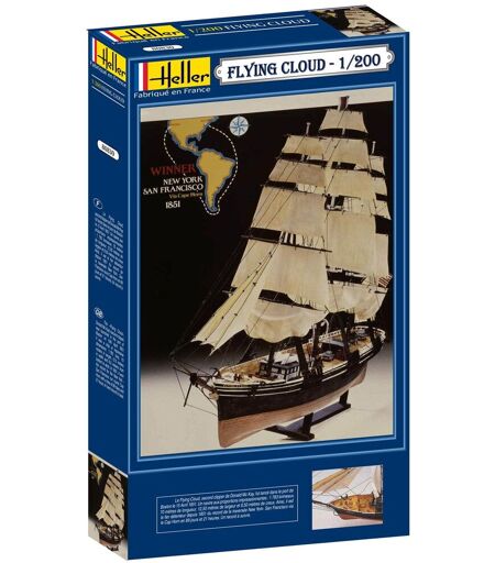 Maquette à monter d'un navire surnommé le Flying Cloud, voilier mis en service de 1851 à 1874 sous deux pavillons (États-Unis, Royaume-Uni).Nombre de pièces : 126.Échelle : 1/200.Dimension de la maquette montée : 40,6 x 11,5 cm. Age minimum : 15 ans ...