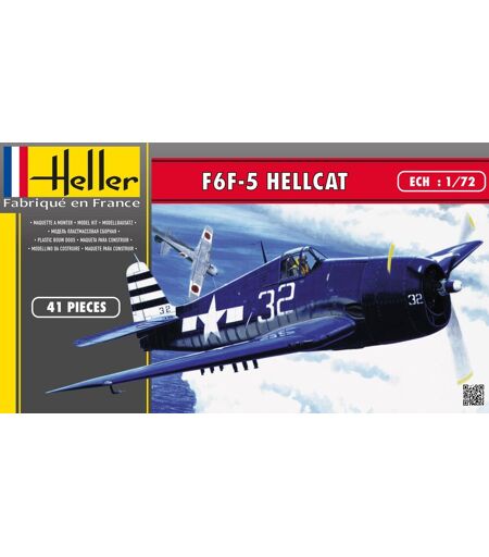 Au cours de l'été 1943 apparaît le « F6F-5 HELLCAT ", version améliorée du F6F-3. Il comporte un pare-brise et un capot moteur entièrement redessinés et peut porter jusqu'à 907 kg de bombes sous le fuselage et six roquettes d'attaque au sol sous les ailes, ce qui en fait un avion d'attaque particulièrement redoutable, servant essentiellement dans les escadrilles de l'U.S. Navy, mais aussi le corps des Marines. La version britannique du F6F-5, le Hellcat Mk II, servira dans la Royal Navy en Europe et dans le Pacifique. Après la guerre, les Hellcat continueront à servir au sein de l'U.S. Navy jusqu'en 1953. Le principal utilisateur étranger fut l'Aéronavale française qui eut trois escadrilles de F6F-5 engagées en Indochine entre 1950 et 1954. Au total, 12.275 Hellcat furent construits, dont 8.555 dans la version F6F-5, avant que la production ne cesse en novembre 1945. Nombre de pièces : 41. Peintures nécessaires non fournies : 002 - 011 - 015 - 019 - 024 - 033 - 053- 056 - 064 - 080 - 085 - 091 - 106 - 116 - 127. Dimensions de la maquette assemblée : Longueur : 18.1 cm. Largeur : 14.2 cm. ...