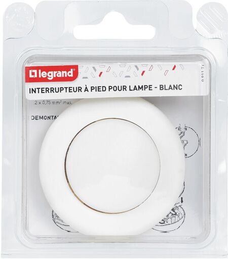 Interrupteur 2A 250V avec commande au pied pour lampadaire - Blanc - Legrand