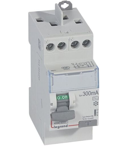 Interrupteur différentiel DX³-ID arrivée haute et départ haut à vis 2 Pôles 230V 25A type AC 300mA 2 modules LEGRAND 411613