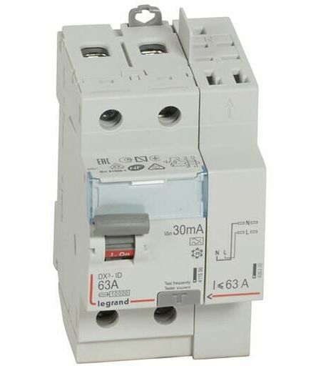 Interrupteur différentiel DX³-ID automatique 2 Pôles 230V 63A type a 30mA 3 modules Legrand 411639