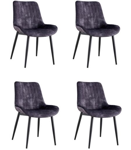 Lot De 4 Chaises "Val Thorens" En Velours Et Métal - Gris Anthracite - H 86 X L 61,5 X P 55 Cm