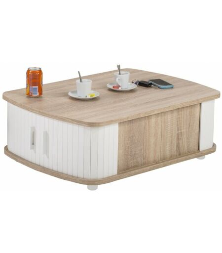 BEAUX MEUBLES PAS CHERS Table Basse Rectangle 80 cm Chêne - Coloris: Blanc