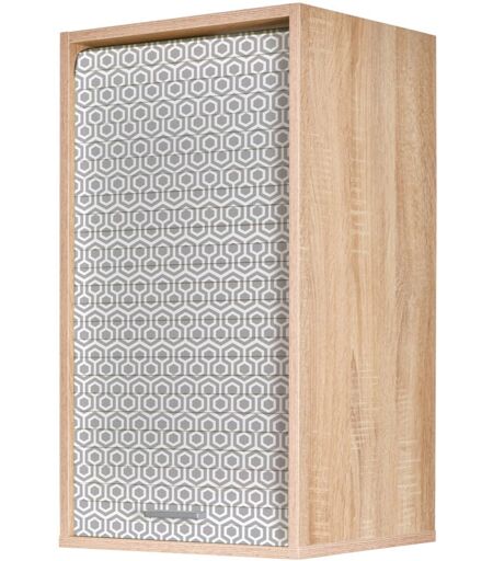 Accentuez la touche vintage en plaçant ce meuble haut de cuisine à rideau chêne imprimé gris de la gamme COOK sur le mur de votre cuisine. Les dimensions optimisées sont très pratiques pour lui trouver une place parmi les assortiments de meubles. L'intérieur conforte cette qualité, grâce à ses trois compartiments spacieux , séparés par des tablettes à hauteur réglable . Les mugs et les bols à soupe seront couverts discrètement par le rideau coulissant . Cette fonctionnalité révèle également des imprimés blancs sur le papier décor . Le reste du meuble affiche une couleur blanche unie qui met en valeur des imprimés. Couleur : chêne Matière : structure en panneaux de particules mélaminés, rideau en panneaux de particules (baguettes de 4 cm) revêtus d'un papier décor blanc imprimé Dimensions (Lxlxh) : 40 x 35 x 72 cm Dimensions utiles (Lxlxh) : 36,8 x 30 x 55,1 cm Dimensions utiles de la tablette (Lxl) : 36,8 x 30 cm Un rideau coulissant de haut en bas 2 tablettes réglables en hauteur ...