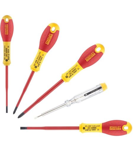 Set De 5 Tournevis isolés Fabriqués En France - Manche Bi Matière - 3.5X75 - 5.5X150 - PH1 X100 - PH2 X 125 - TESTEUR STANLEY - XTHT0-62692