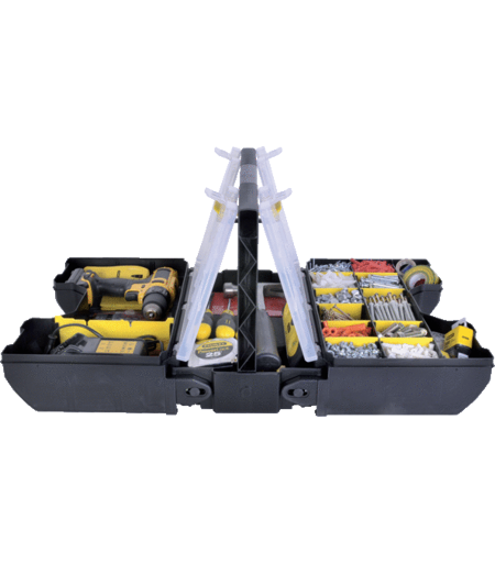 La malette, bicolore transparent et noir, possède une structure en polypropylène. Elle se compose de 2 compartiments sur les côtés de la malette se déploient pour l’outillage et de 2 compartiments centraux avec couvercles. Ce grand espace de rangement permet le rangement des forets, de scies à métaux, des tournevis, des marteaux… . Le double système de fermeture permet le blocage des tiroirs et la fermeture des boîtes. Cette malette est livrée sans outils.STANLEY ...
