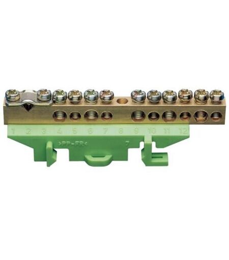Hager - Borne en laiton 1x25² 5x10² 5x16² avec base de montage. Couleur: vert KM11B