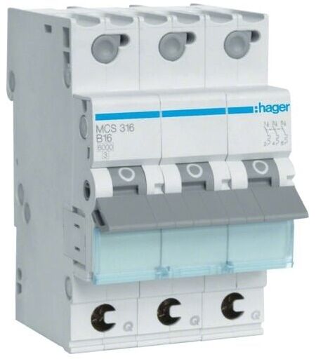 Hager - MCS316 MCS316 Disjoncteur triphasé 16 a 230 v, 400 v C133191