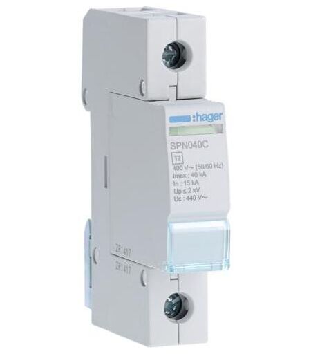Hager - Parafoudre 1P débrochable 40KA type 2 avec voyant fin de vie SPN140C