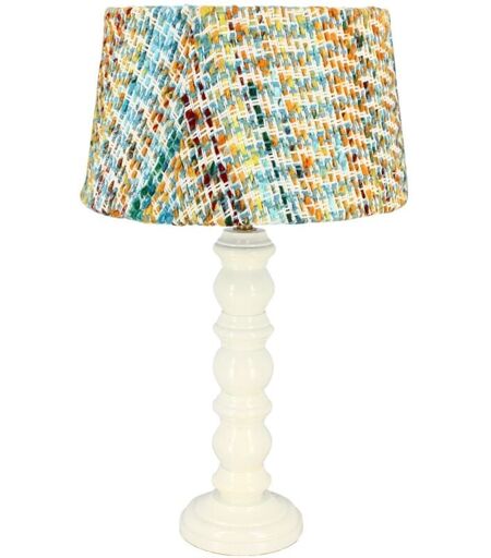 La lampe Romy, avec son pied en bois blanc finition brillante et son abat-jour en tweed multicolore, est un chef-d'œuvre de design qui apportera une touche d'élégance et de vivacité à votre espace.Le pied en bois blanc finition brillante de la lampe Romy incarne la modernité et la sophistication. Sa finition brillante ajoute une touche d'élégance à votre espace, l'abat-jour en tweed multicolore est un véritable joyau de cette lampe. Le tweed, est connu pour sa robustesse et sa longévité. En raison de sa construction tissée dense et de la qualité de ses fibres, il est résistant à l'usure, aux déchirures et aux accrocs, ce qui en fait un matériau idéal. Avec une hauteur de 51 cm, la lampe Romy est un choix idéal pour éclairer des zones spécifiques tout en apportant une ambiance chaleureuse.Lampe à poser avec pied en bois blanc finition brillante avec abat jour en tweed multicolorTaille de la lampe 12.5x13x51cm et abat jour 25x30x18cmComposition du pied : bois recyclé finition brillante ...
