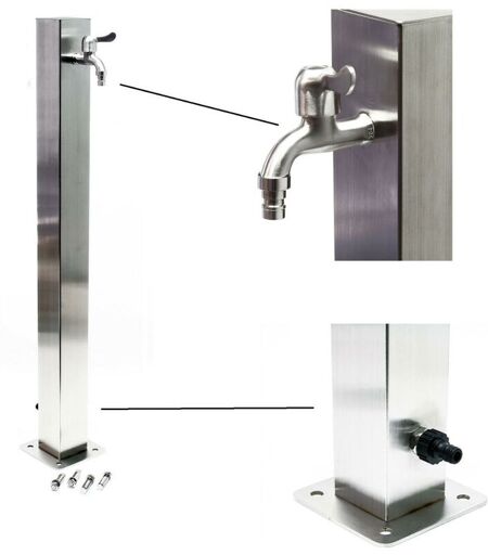 #Description# La colonne d’eau carré de 95 cm en acier permet d'arroser les plantes ou se laver les mains et évite les incessants va-et-vient. Le point d’eau que nous vous offrons est idéal pour l‘alimentation en eau puisqu'il est équipé d‘un robinet avec raccord et un coupleur supplémentaire pour y installer un tuyau de jardin. Belle et simple, la colonne d‘eau épousera le cadre de chaque paysage et y ramènera une note particulière qui attirera tous les regards. La construction robuste en acier inoxydable facilite le montage et la résistance au gel, à la corrosion ainsi qu‘aux rayons UV. L‘utilisation est très simple. De fabrication complètement étanche, l‘eau coulera du robinet sous la pression de la colonne une fois remplie avec l‘eau qui vient du tuyau de jardin raccordé au connecteur. Vous recevrez des accessoires d‘ancrage au sol, la colonne restera intacte sans vissage. Très pratique aussi à cause de la hauteur de la colonne, avec 95 cm, plus besoin de vous courber, votre dos ...