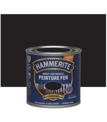 Peinture mat ferronerie Hammerite - 250 ml Un seul produit sans préparation ni sous-couche Séchage rapide en 15 mn Coloris noir Rendement : 4 à 5 m² / l Nettoyage avec Hammerite diluant Marque : Hammerite Référence fournisseur : 5093644 Type de produit : Peinture mat ferronnerie Couleur : Noir Nettoyage des outils : Diluant Rendement : +/- 5 m²/l Suface couverte avec un pot : +/- 1,25 m² Surface à peindre : Métal Contenance : 250 ml Conseils d'utilisation : Avant toute manipulation, il est nécessaire de porter des lunettes à protection latérale conformes à la norme NF EN166. Utiliser des gants de protection appropriés résistants aux agents chimiques conformes à la norme NF EN374. Avertissement : Tenir hors de portée des enfants, Dangereux. Respecter les précautions d'emploi Composition : Hydrocarbures, C9-C11, n-alcanes, isoalcanes, cycliques, ...