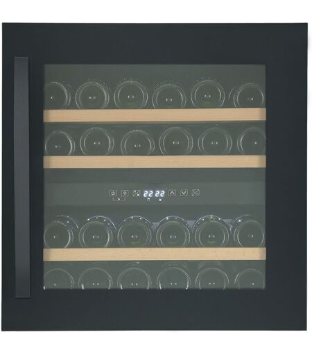 Cave à vin encastrable; Niche de 60 cm; 30 bouteilles - 2 zones; Porte réversible vitrée noire; Dimensions (LxHxP) 59 x 59.5 x 56.3 cm; Classe énergétique G ...