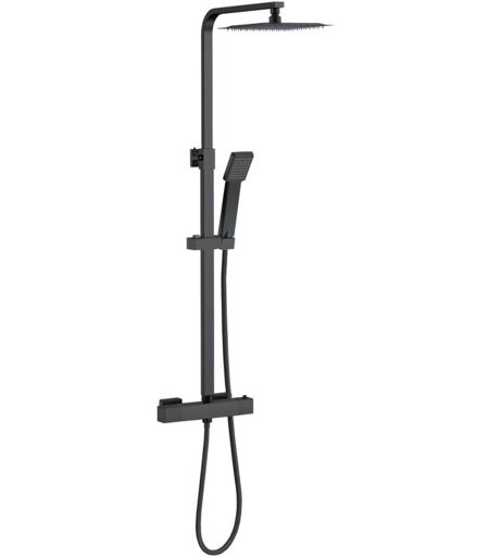 AICA SANITAIRE Colonne de douche thermostatique avec pomme de tête, douchette et flexible,noir mat, Carré, hauteur réglable 73-115cm, AICA