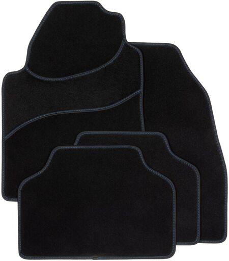 DBS - Tapis de Voiture Le Mans - Universel - Ganse textile noire surpiqure bleu - Antidérapant - 4 Pièces : Avant + Arrière - Tapis de sol Automobile