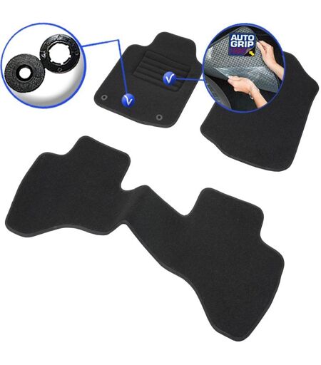 Ce set de tapis de sol sur-mesure est parfaitement adapté à votre PEUGEOT 107 et CITROËN C1 et TOYOTA Aygo (06/2005 à 04/2014). En exclusivité, le tapis conducteur est doté de notre technologie breveté Autogrip®, il sera donc parfaitement fixé au plancher du véhicule. Cela lui évitera de s'échapper sous vos pédales, garantissant ainsi votre sécurité ! Le tapis conducteur comporte également un renfort au niveau du talon, qui lui permet d'être résistant dans le temps. Le dos des tapis passagers est granulé, ce qui lui permet d'être antidérapant sur tous types de moquette. Ces tapis pour 107 et C1 et Aygo permettent une tenue parfaite sur plus de 100.000km. De plus, ils sont faciles d'entretien etrésistants à l'usure. Les tapis Star sont livrés avec les clips de fixation d'origine pour une adaptation parfaite à votre véhicule. Ces tapis sur mesure sont fabriqués avec une moquette de qualité d'une densité de 900g/m². Cette moquette est fabriquée à base de bouclette aiguilleté de couleur noir, pour un résultat comparable à celle du constructeur. Enfin, la finition des tapis est réalisée avec un contour en velours noir, le rendant sobre de manière à s'adapter parfaitement à votre l'habitacle ! ...