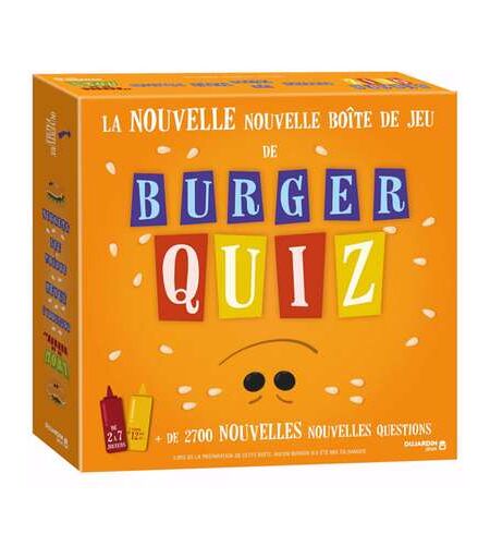 à partir de 10 ans de 2 à 16 joueurs 20 minutes Vie Quotidienne Connaissances La nouvelle version du célébrissime jeu TV Burger Quiz avec 2 700 nouvelles questions ! À 2 ou à plusieurs en équipes, KETCHUP et MAYO s'affrontent dans : Nuggets, Sel ou Poivre, Menus, l'Addition et le BURGER DE LA MORT !!! (en majuscule ça fait plus peur). ...