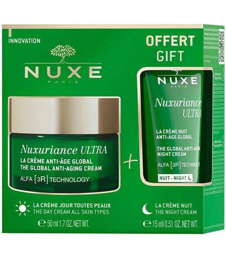 Coffret Crème Anti-Âge Ultra Nuxurance®. Anti-rides et anti-âge - Soin du visage raffermissant. Âge: Entre 36 et 50 ans, Plus de 50 ans. Type de peau: Sensible, Tous types de peaux. Traitement: Jour. Textures: Crème. Green beauty: Ingrédients naturels, Végétalien. Produit de parapharmacie. Les tendances: Acide hyaluronique. Ingrédients: Acide hyaluronique ...