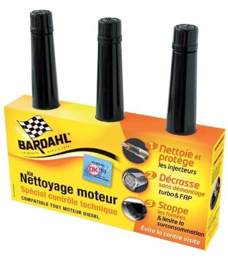Kit Nettoyage controle technique Diesel 3x 250ml BARDAHL Kit Nettoyage contrôle technique Diésel - Complet et économique, il réduit les émissions polluantes et facilite le passage au contrôle technique antipollution - Il traite l'ensemble du moteur en nettoyant les injecteurs - Il décrasse sans démontag ...